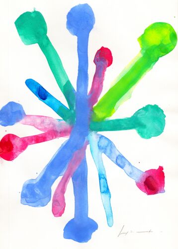 春が来るね 今日は、絵を描こう よーく観てみてね 子供の観察眼は すごい とりゃー! 素敵な色だね! 「手型絵やっていい?」 こちらも、熱がこもってます 「描いたところに手があたって左が描けない〜」 ついに腕枕(わんちん)登場! 画家の専門道具です …